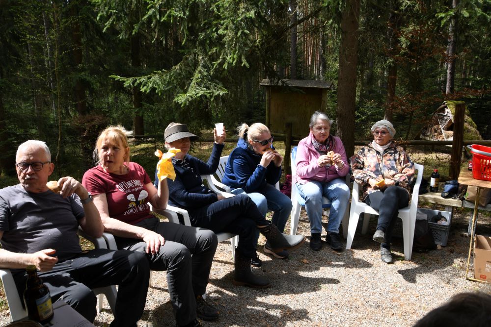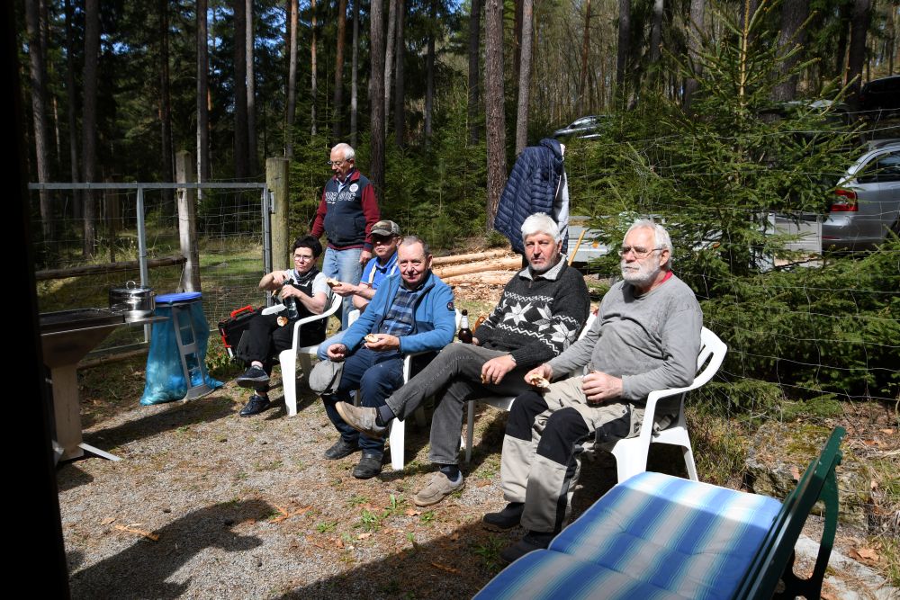 Nach getaner Arbeit kam auch der gemütliche Teil der Veranstaltung nicht zu kurz. Max gab noch Hinweise zu den im Moment notwendigen Arbeiten am Bienenstock. Und auch der gegenseitige Austausch war sehr interessant.