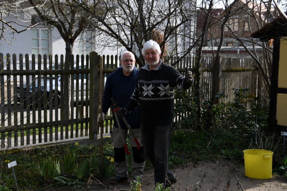 Frühjahrsputz 2026 im Deutschen Bienenmuseum Weimar Beitrag veröffentlicht:28. März 2026 Bei kalten, aber sonnigen Wetter wurden die Beet- und Wiesenflächen von vertrockneten Pflanzenresten und Laub befreit. Getreu dem Motto:“ Viele Hände- schnelles Ende“ packten alle mit an. Nach drei Stunden war die Arbeit getan. Die Gulaschsuppe schmeckte anschließend. Das könnte dir auch gefallen Herzlichen Glückwunsch zum 90. Geburtstag und 70 Jahre Mitglied im Thüringer Imkerverein 25. September 2023 Weinachtsfeier in Jena 24. Dezember 2023 Gedenken in Oßmannstadt an Imker-Pionier Ferdinant Gerstung 6. März 2023