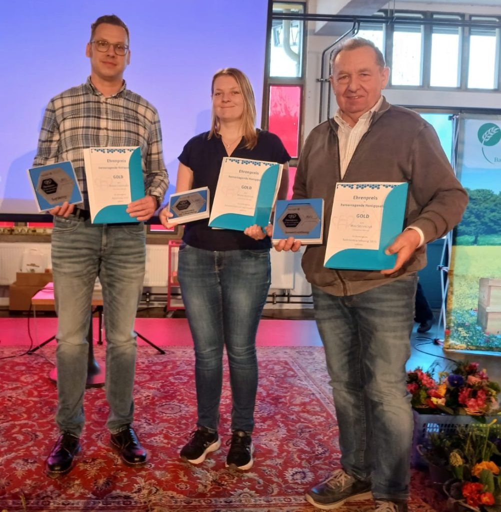 Die Auszeichnung zum Honigwettbewerb 2025 – Robert, Marie und Max erhielten eine Goldmedaille für ihren eingereichten Honig.