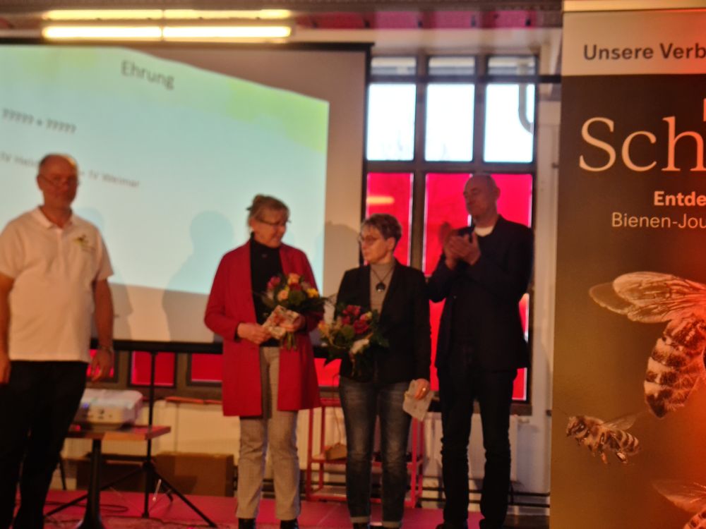 Für ihre unermüdliche und aufopferungsvolle Tätigkeit für den Landesverband der Thüringer Imker wurden Heidrun und Jana geehrt. Jana Thielemann führt derzeit allein die Geschäftsstelle des Landesverbandes.